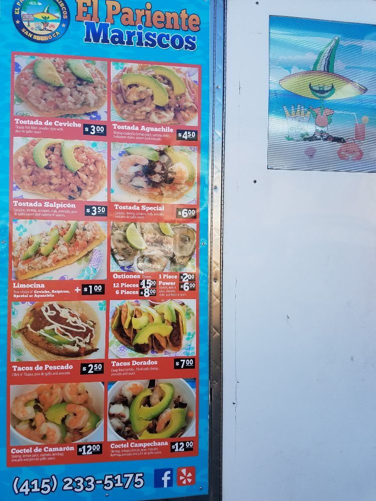 Welcome to Mariscos El Pariente, a delightful Mexican gem located in San Bruno, CA. Specializing in fresh seafood, this casual food truck offers a menu that boasts vibrant flavors and fresh ingredients. Highlights include the renowned Tacos Dorados, perfectly crispy and filled with succulent shrimp, ensuring that each bite excites the palate. The Tostada Aguachile offers a refreshing twist, although some diners have noted the need for a bit more zing.